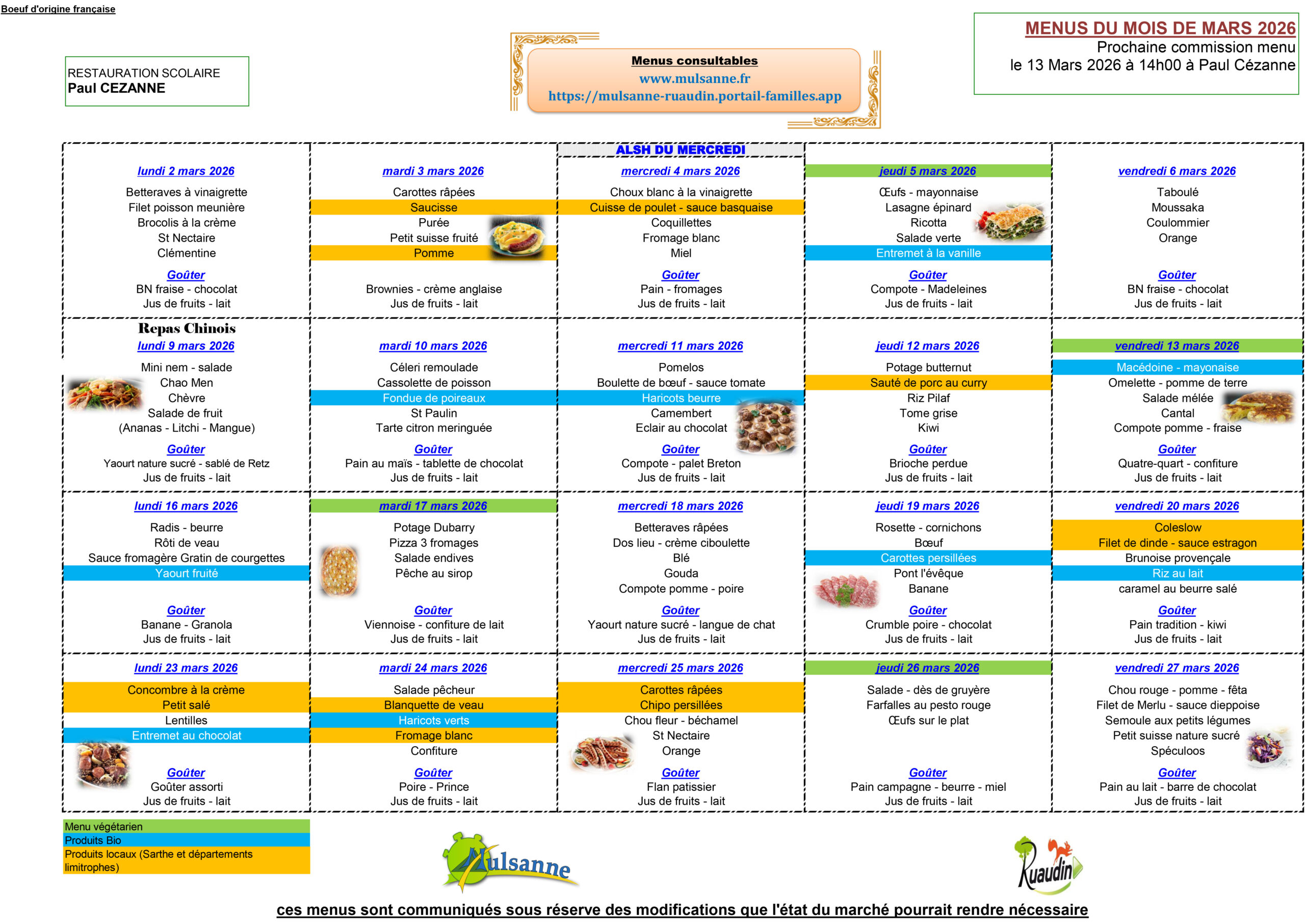 Menu scolaire pour le mois de Mars – Paul Cezanne